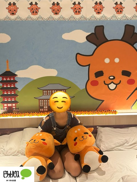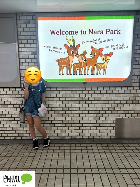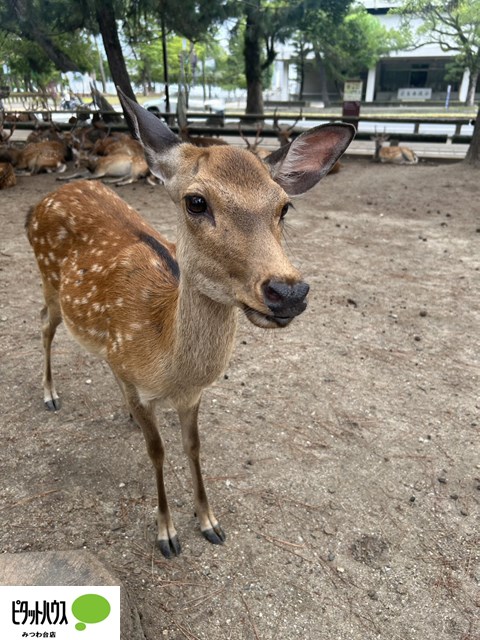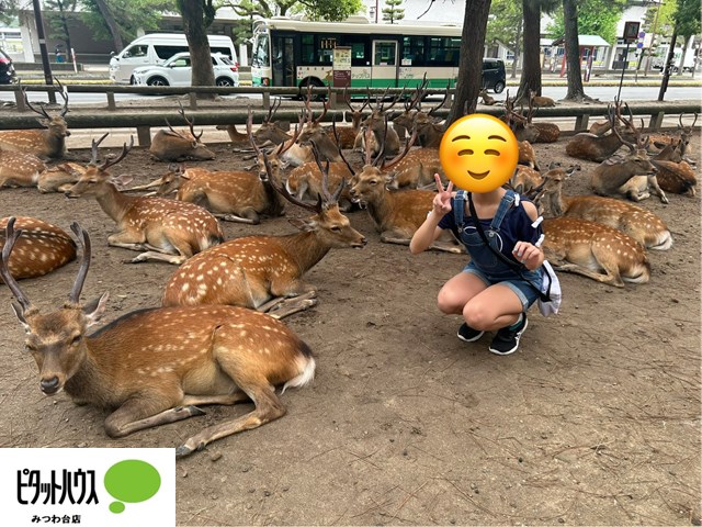 たくさんの可愛い鹿たちに囲まれて、みんみんはご満悦の様子!