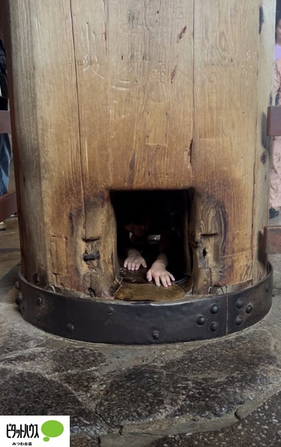 柱の穴をくぐり抜けると「無病息災」「祈願成就」のご利益があると