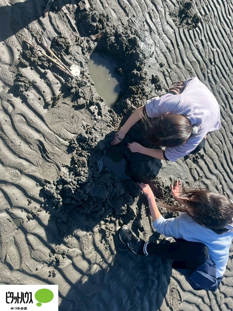 砂を掘ったり、絵を描いたり、思い思いに楽しんでいました。冬の海も良いもんですな。