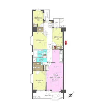 専有面積 | 91.13u | バルコニー面積 | 12.61m² |