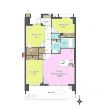 専有面積 | 72.08u | バルコニー面積 | 14.7m² |