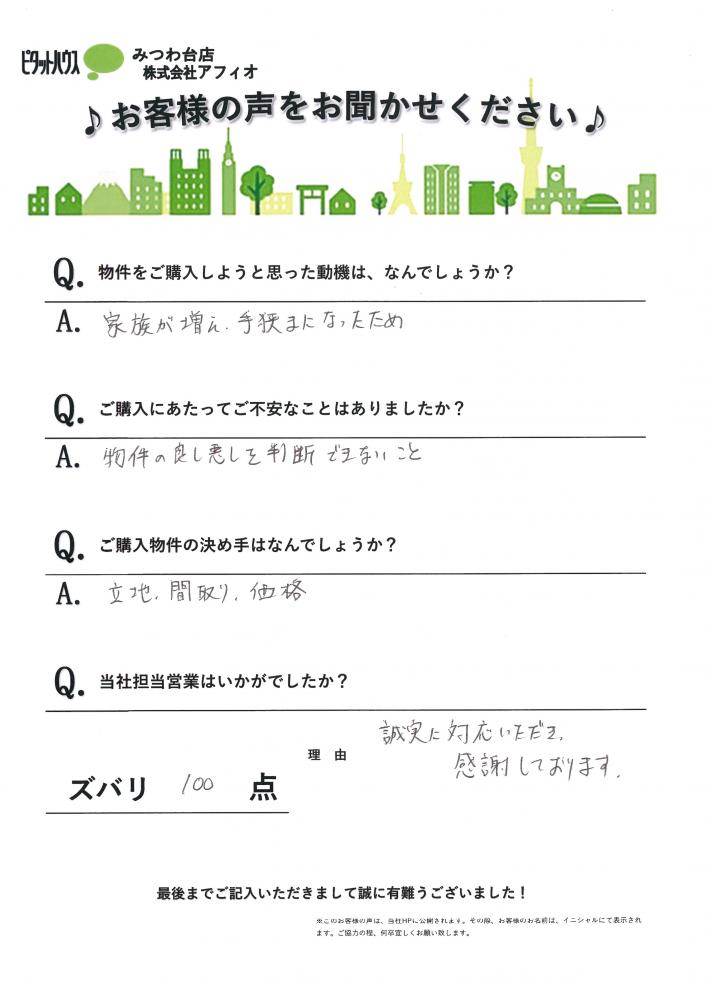 マイホーム探しのお手伝いが出来て嬉しく思います。