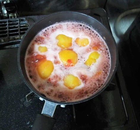 この皮から赤いエキスが出てきれいな赤色になるので煮詰めてジャムにします