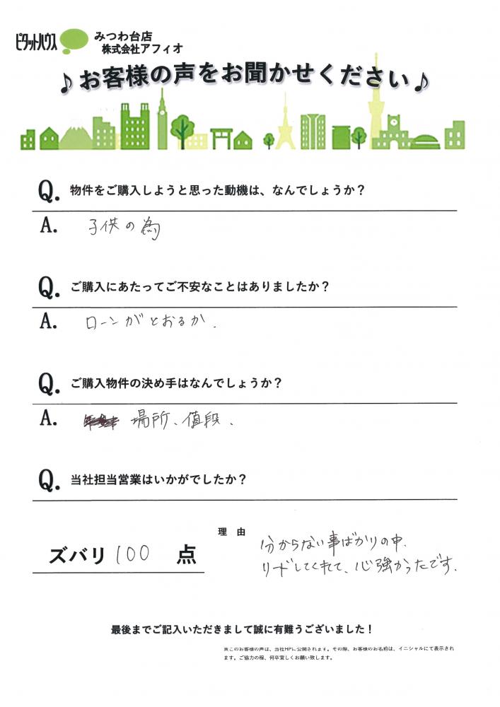 T様の物件のご購入のお手伝いが出来た事嬉しく思います。